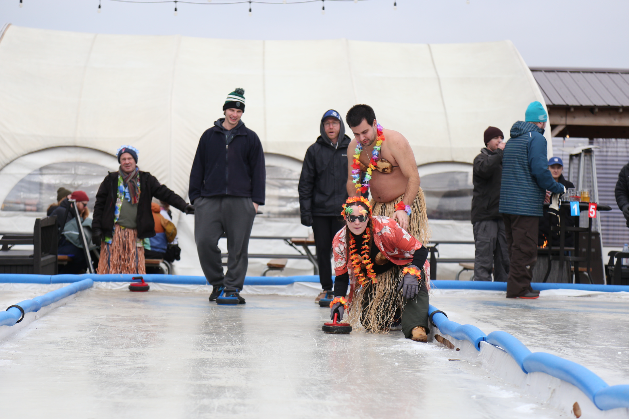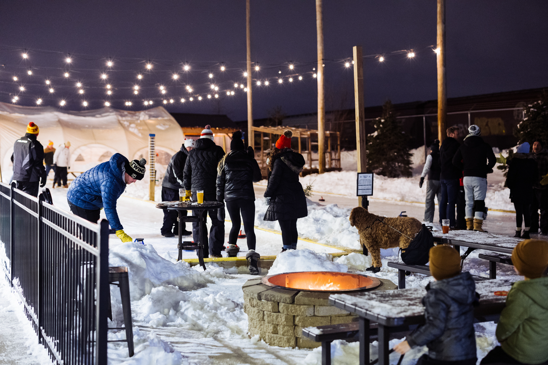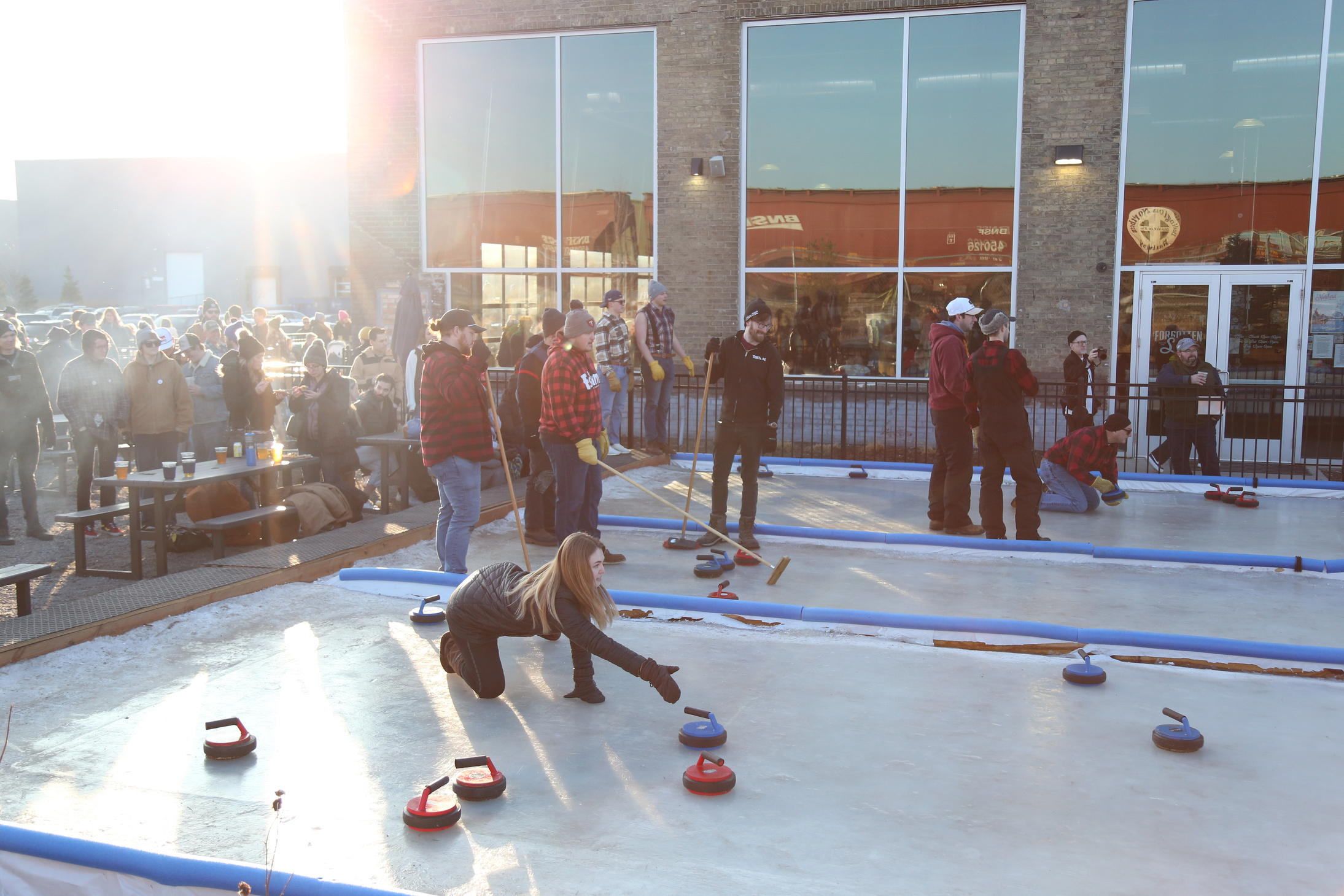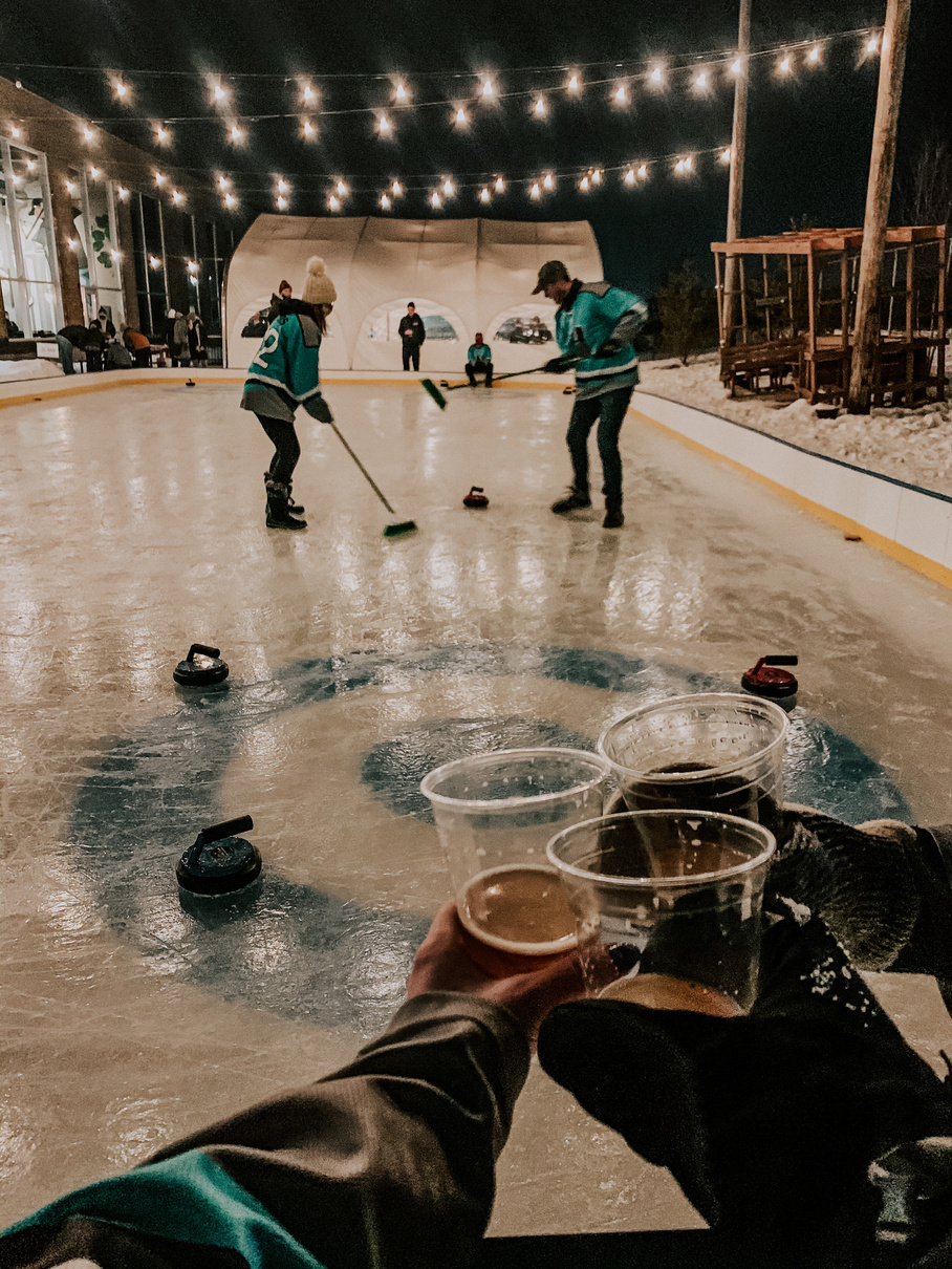 Experience winter in Minnesota with curling at the brewery. Every year, we flood our bocce courts and open to space up to curl. From curling leagues, to open curling and more, there are tons of ways to try out curling this winter.